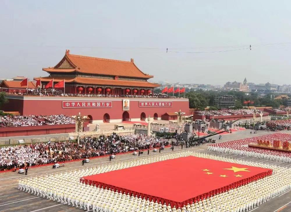 2020年10月1日晨,北京天安门广场举行国庆升国旗仪式,迎接中华人民共和国成立71周年。来自全国各地的群众齐聚天安门广场,共同见证着五星红旗冉冉升起的庄严时刻。