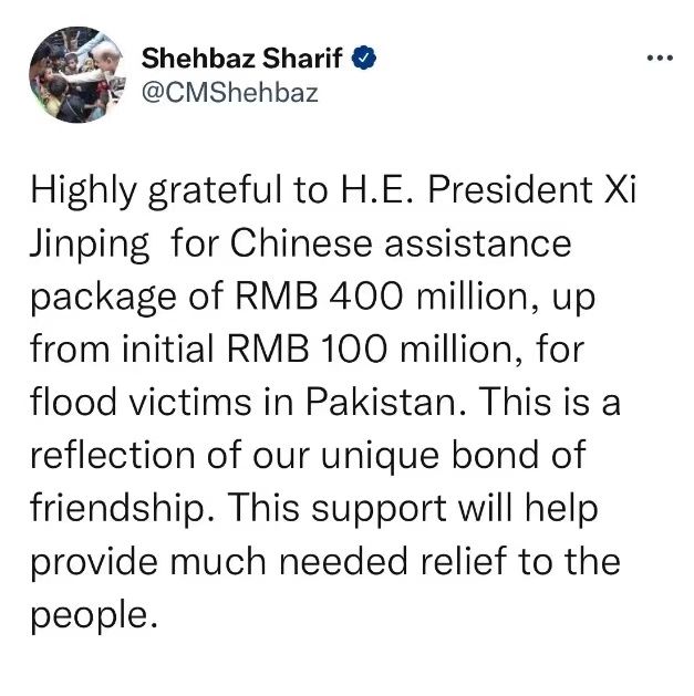 感谢中国政府全力支持巴抗洪减灾,及时派专家组赴巴。有了中国专家组的支持,巴基斯坦一定能早日从灾情中恢复。巴基斯坦外交部长比拉瓦尔·布托·扎尔达里在会见专家组时说。