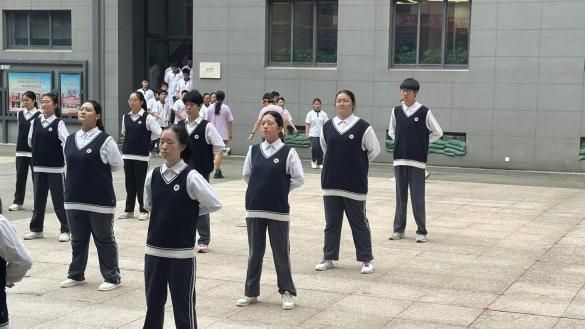 此刻,熟悉的旋律在操场上空回荡。我深吸一口气,跟着节拍舒展手臂,踢腿时稳