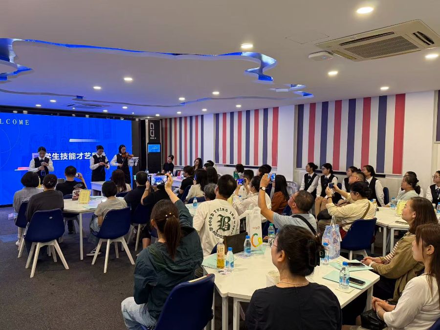 紧接着,街舞表演登场,动感的节奏瞬间点燃全场热情,掌声此起彼伏。随后的酒店英语情境对话很有意思,同学们流利的口语展现了扎实的语言功底。最让人眼前一亮的是调酒和餐巾折花展示,晶莹的饮品、精致的花型,把学到的技能完美呈现,家长们纷纷点头称赞。