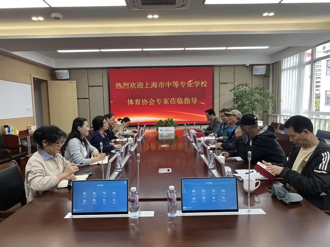 为全面贯彻落实立德树人根本任务,牢固树立 “健康第一” 教育理念,进一步建立和完善中职学校体育工作评价机制,切实推进上海市中职校《体育与健康》学科“双新”工作方案落地见效,持续提升各中职校体育工作水平与教育教学质量,助力学生身心健康发展,2025年10月24 日,上海市中等专业学校体育协会督导检查组在郭洪秘书长的带领下,莅临我校开展体育工作专项调研(督导)。校长严南南、党支部书记马海俐、副校长陶莉华、工会主席李爱梅及教务处、体育教研组相关负责人全程陪同调研。