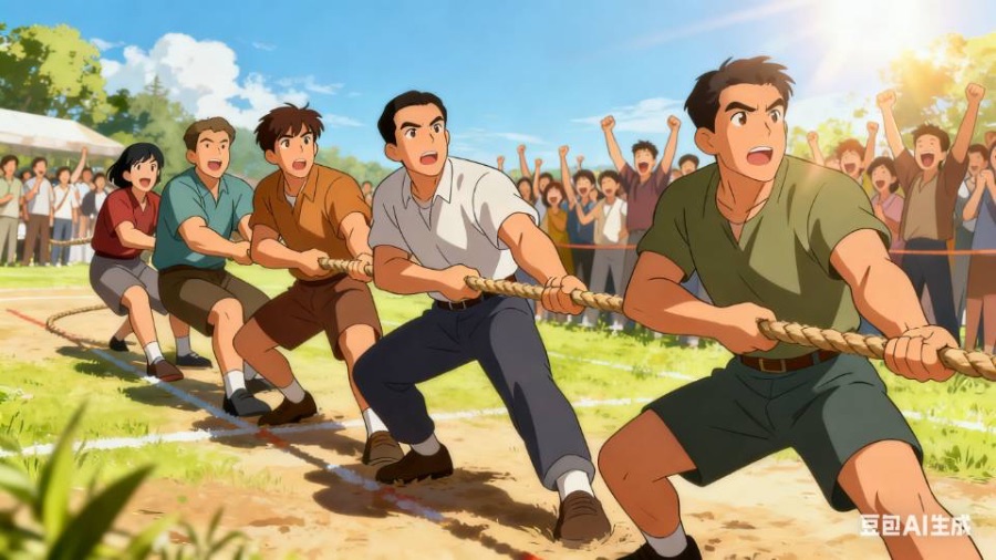 胜负在哨响时已成次要。松开绳索,掌心留下绯红的烙印,像一枚共同的印章。原来,当所有人的力量朝着同一个方向,绳子便不再是绳索,而成了连接心灵的脉络——我们在这头,团结在那头,拉近的不仅是胜利的距离,更是心与心之间最坚实的桥梁。