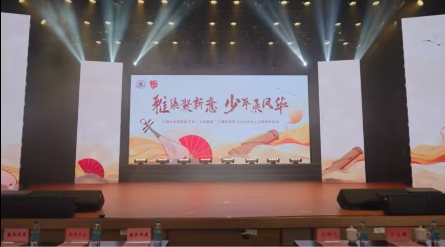 踏入学校迎新活动的会场,“雅集聚新意,少年展风华”的主题大屏瞬间抓住视线。国风元素铺满舞台背景,琵琶、折扇的图案与飘逸的书法相映成趣,暖黄的光影勾勒出古典又鲜活的氛围。舞台上方的光束交错流转,为这场迎新盛会添了几分灵动。台下的席位早已布置妥当,瓶水整齐摆放,静待师生入座。这场融合传统雅集与青春风采的活动,不仅是辞旧迎新的仪式,更是为中职学子搭建的展示舞台,让大家在传统文化的浸润中,以少年意气迎接新学年的征程,书写属于自己的风华篇章。
