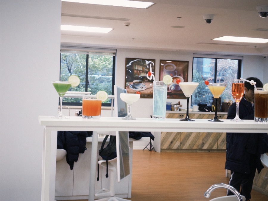 作品筹备阶段,社员们系统梳理了烈酒基酒特性、风味搭配原理及平衡法则。通过多次小组研讨,确定了以干型风味为主轴的结构方案。实操环节中,我们严格遵循专业流程,精确计量各类配料,重点练习了冰镇、搅拌等关键手法,并记录了不同配方比例的感官差异。