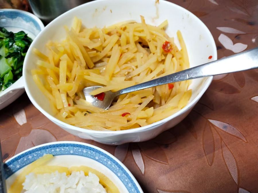 今天终于鼓起勇气挑战了传说中“最简单也最考验功底”的土豆丝。从切土豆开始就手忙脚乱,生怕切得粗细不均,结果还是有的粗有的细,不过好在没切到手!泡淀粉、控水、热油,每一步都对着教程反复确认,就怕炒糊或者粘锅。当热油爆香小米辣的瞬间,香味一下子就窜出来了,倒进土豆丝翻炒的时候,听着锅里“滋滋”的声响,居然有点莫名的成就感。出锅前撒了点醋和盐,尝一口,脆爽带着微辣,虽然卖相不算完美,但这是我亲手做的第一盘土豆丝!配着白米饭和青菜,简单的家常菜却吃得格外香。原来做饭这件事,只要敢动手,就已经成功了一半。以后也要继续解锁更多家常菜啊!