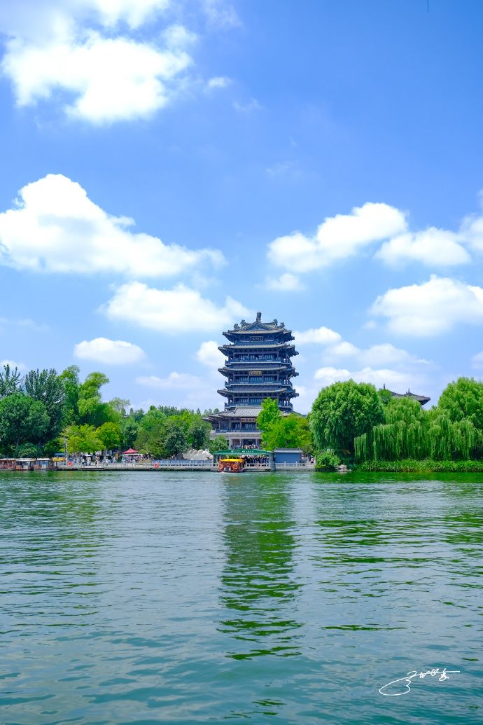 从趵突泉步行片刻,便到了大明湖。漫步湖边,碧波荡漾,岸边翠柳垂丝,远处亭台点缀,微风拂过,满是惬意。乘一叶小船游湖,看湖水泛起涟漪,听船工诉说古城故事,仿佛闯入了诗意画卷。